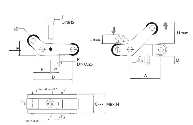 | EP.251016 | 25 | 10 | 16 | 32.3 | 11.8 | 14.3 | 7 | 17 | 6.8 | 6 | 18.5 | 3x12 | M4x16 | 125kg. |