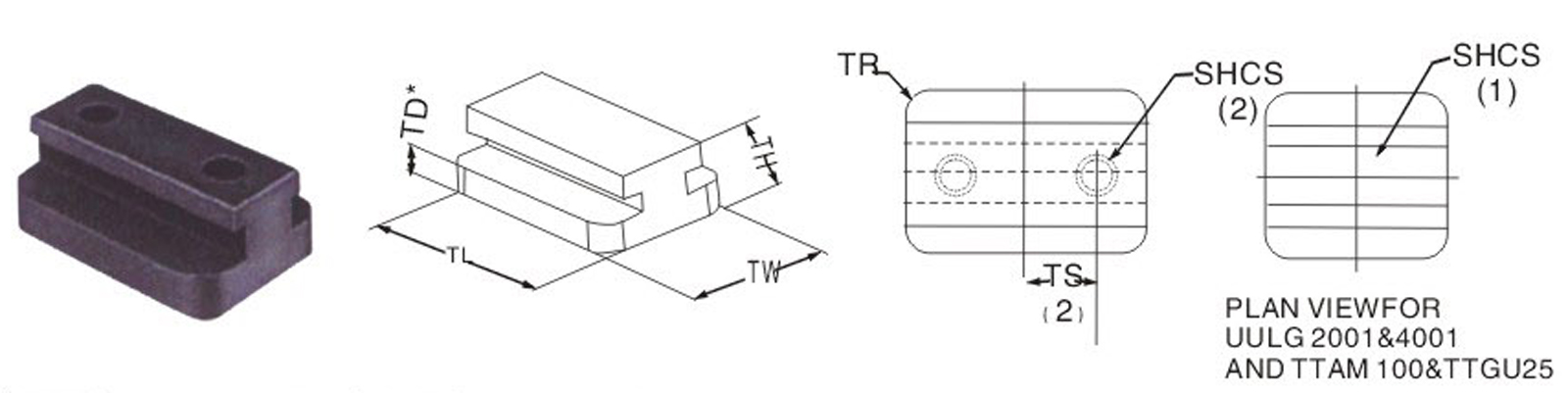 | TS | TL +.000 -.010 | TRAVEL ALLOWED | TW +.000 -.000 | TH +.010-.000 | TD* +.010 -.000 | TR | SHCS (INCLUDED) | SERIES | ||