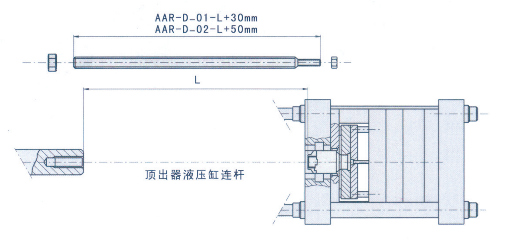 使用附加分離桿延長頂出器液壓缸連桿,AR-D-01用長度為30mm的分離桿,AR-D-02使用50mm的;