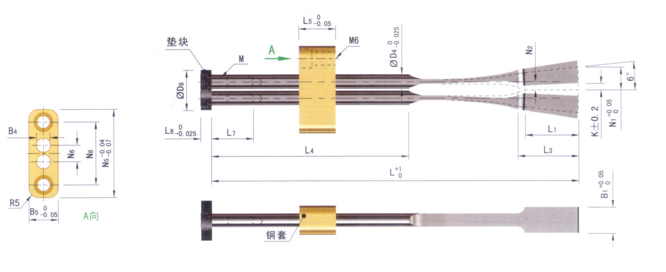 • 3.此款彈弓頂針?biāo)行吞?hào)都配有墊塊、銅套以及安裝螺絲;