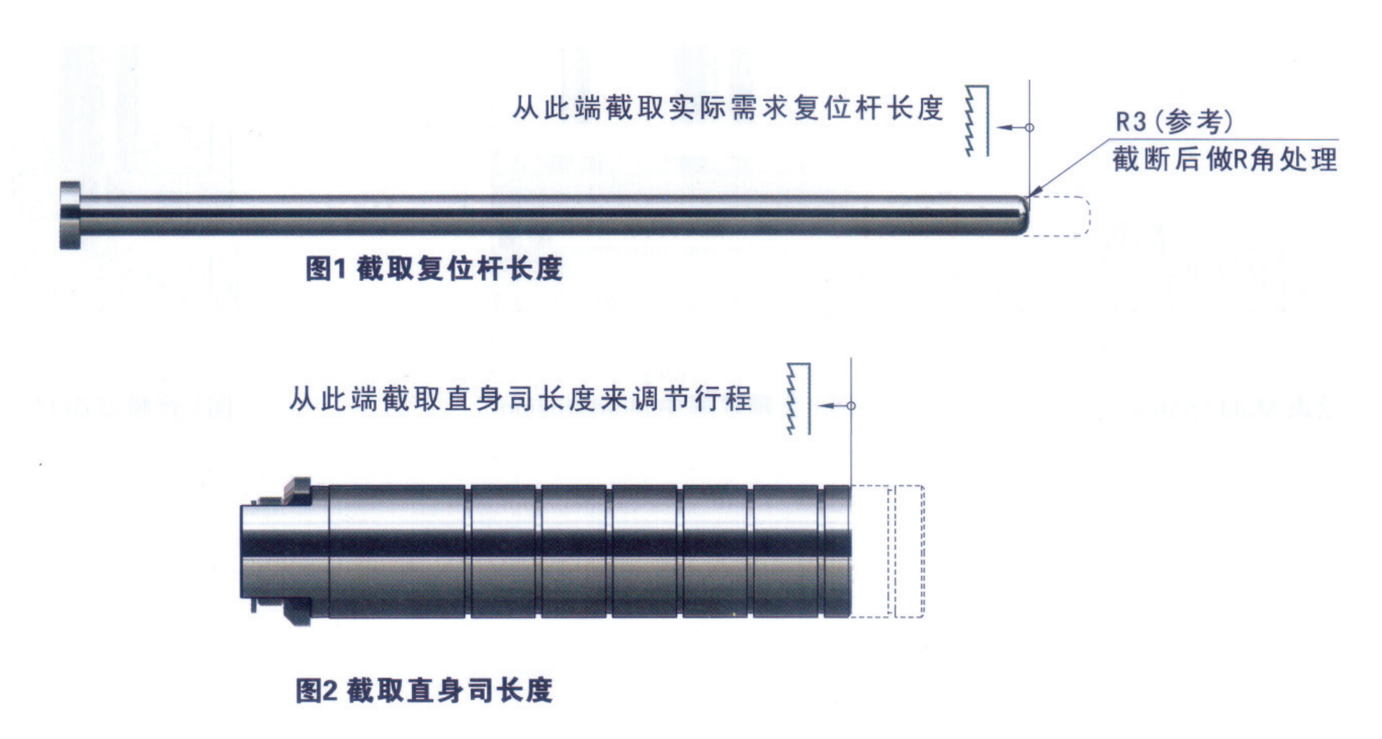 精確計(jì)算行程,可通過截取直身司及復(fù)位桿長(zhǎng)度來調(diào)整復(fù)位行程(如下圖所示);