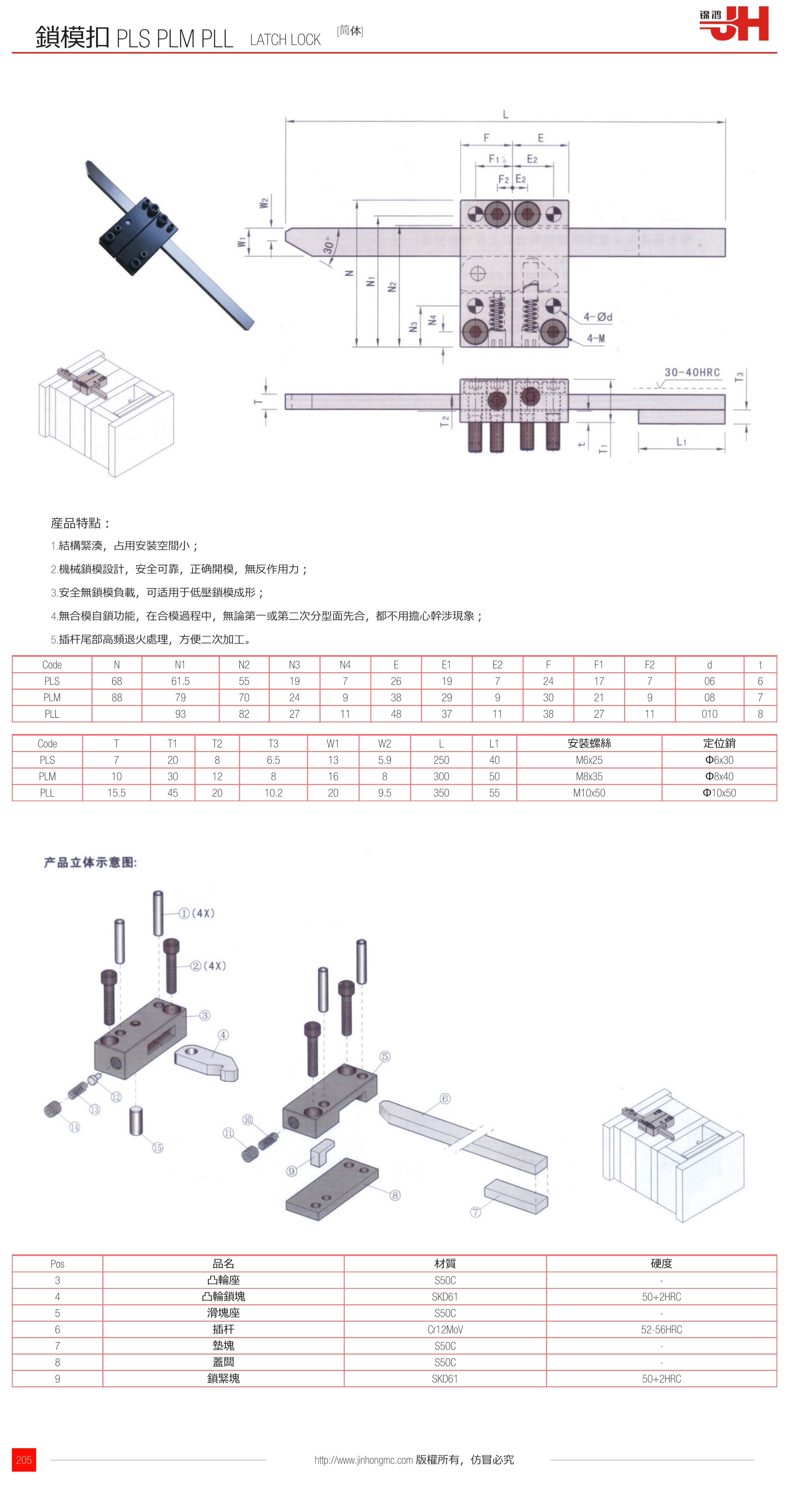 | 9 | 鎖緊塊 | SKD61 | 50+2HRC |