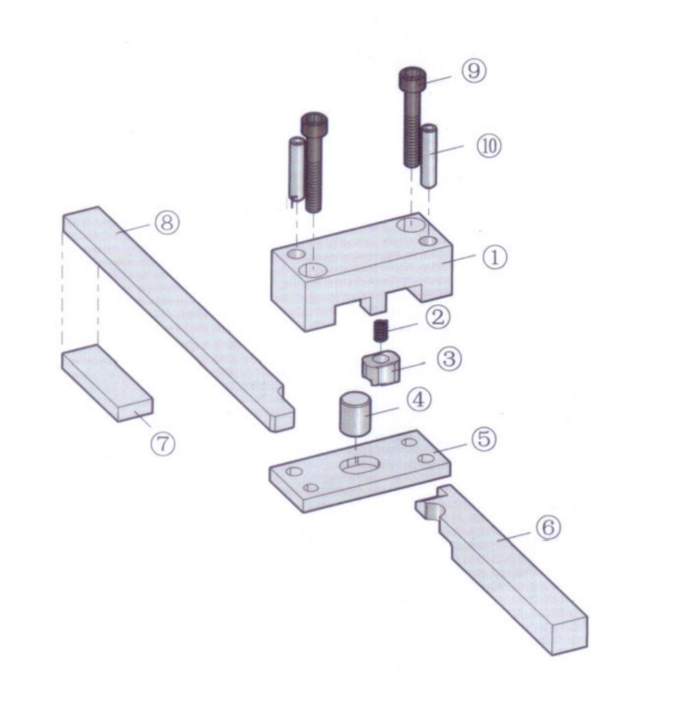 • 安裝插桿,將插桿與墊塊截成所需要長(zhǎng)度,以實(shí)物為準(zhǔn)配做螺孔及銷釘并垂直于分 型面安裝,(注意:保證安裝幾套鎖模扣開(kāi)模行程一致,避免受力不平衡而損壞鎖 ??郏?;