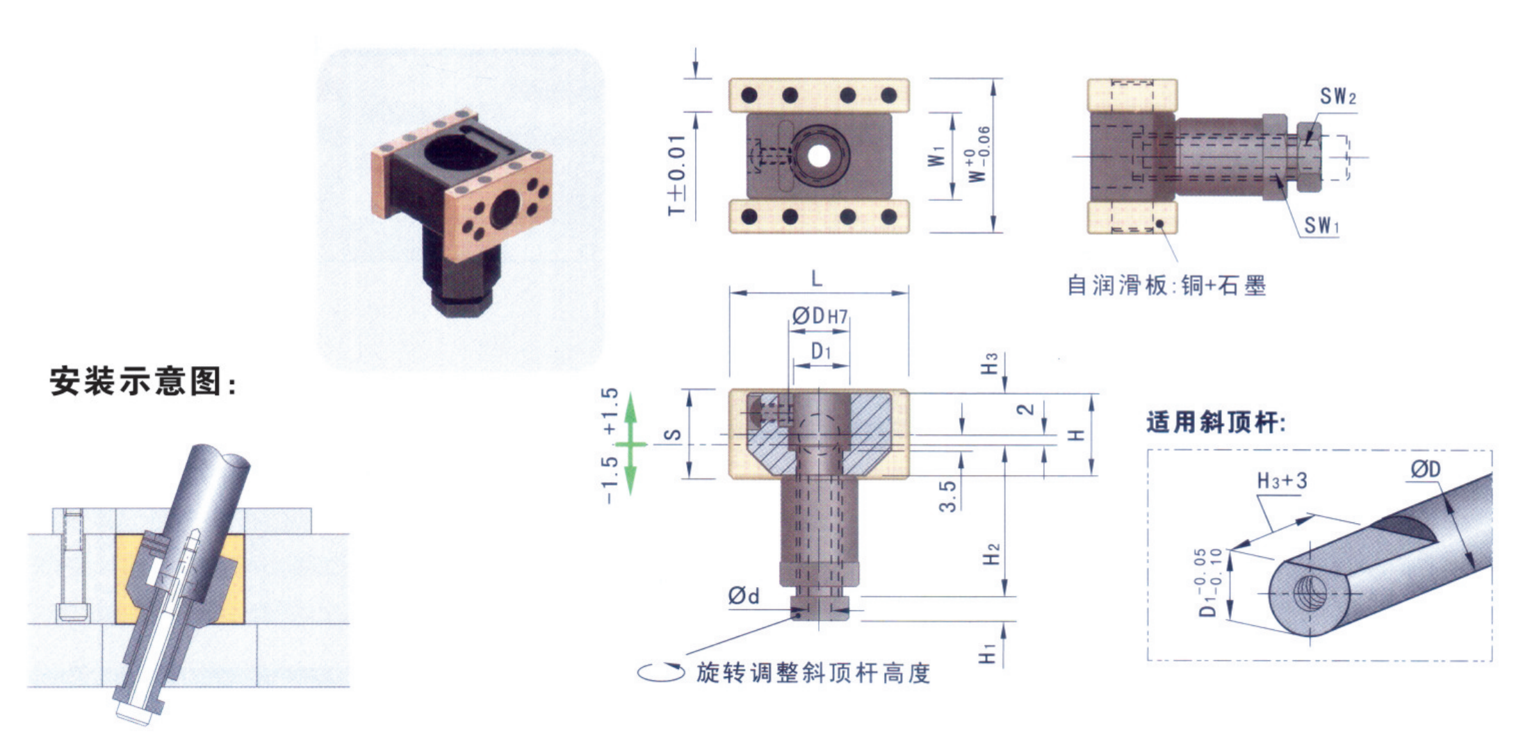 | Code | D | D1 | d | H | H1 | H2 | H3 | W | W1 | S | L | T | Sw1 | SW2 |
