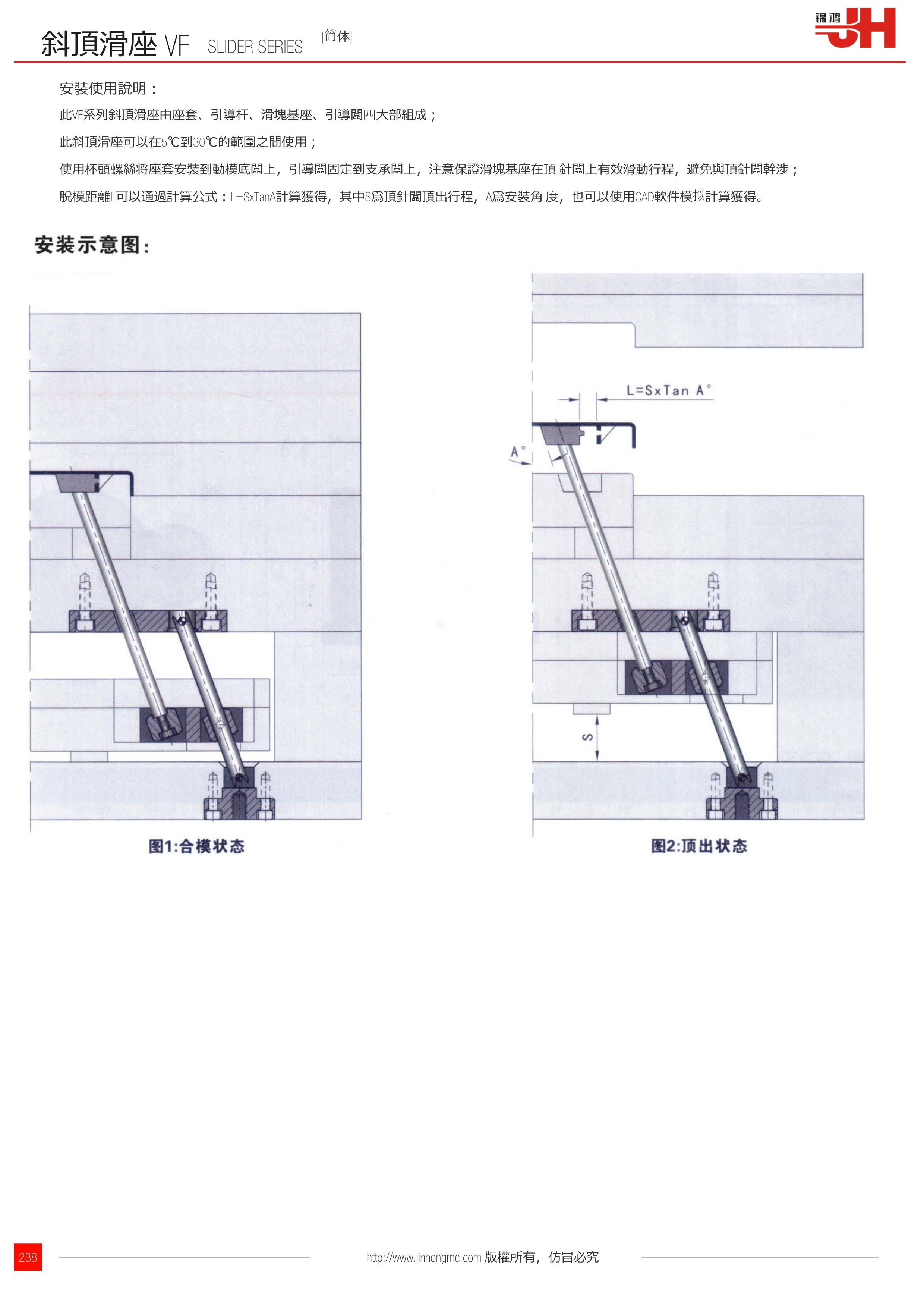 此VF系列斜頂滑座由座套、引導(dǎo)桿、滑塊基座、引導(dǎo)板四大部組成;